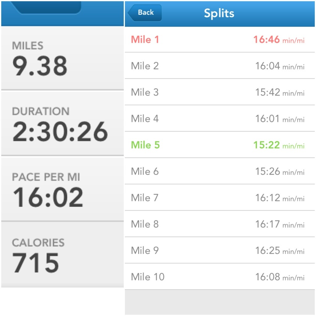 Splits below (I use Runkeeper to track my walks since it separates the stats out from the running stats). The two miles on the greenway are the fastest, probably because it was all shaded, and I didn’t have to stop for traffic or cross streets.