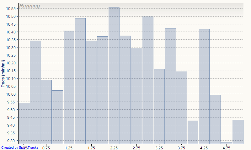 Overall, I am pretty happy with my performance. Except for that one slow mile. I wish I would have sucked it up a little more and kept going. In more optimal weather, I probably would have. But I can’t be disappointed with my time at all!