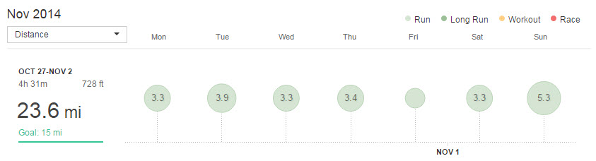 I did good keeping it easy-paced at the beginning of the week! I did intervals (mostly 3:1, but I did 1.5:1 on Monday) on all my runs this week, except for the one mile on Friday that I ran straight through. I think this has helped keep the runs easier, although my legs still feel pretty tired and heavy.