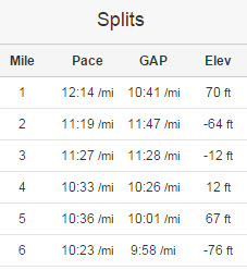 On Saturday morning, I met up with the East Nasty half marathon training group (hey, after two years of saying I would join them for a Saturday long run, I finally did!). They were doing an easy run of 55 minutes (normal training) or 70 minutes (advanced training). I did something kind of in the middle since I wanted to do more than 5 miles I did last weekend. This means for the first 2.5 miles or so of my run I had some company, but the last 3.5 I was on my own. And you can tell by my splits, since I was keeping a way more conversational pace when I was running with other people. But I did manage to run 6 miles without walking, so I’m happy with my progress so far.
